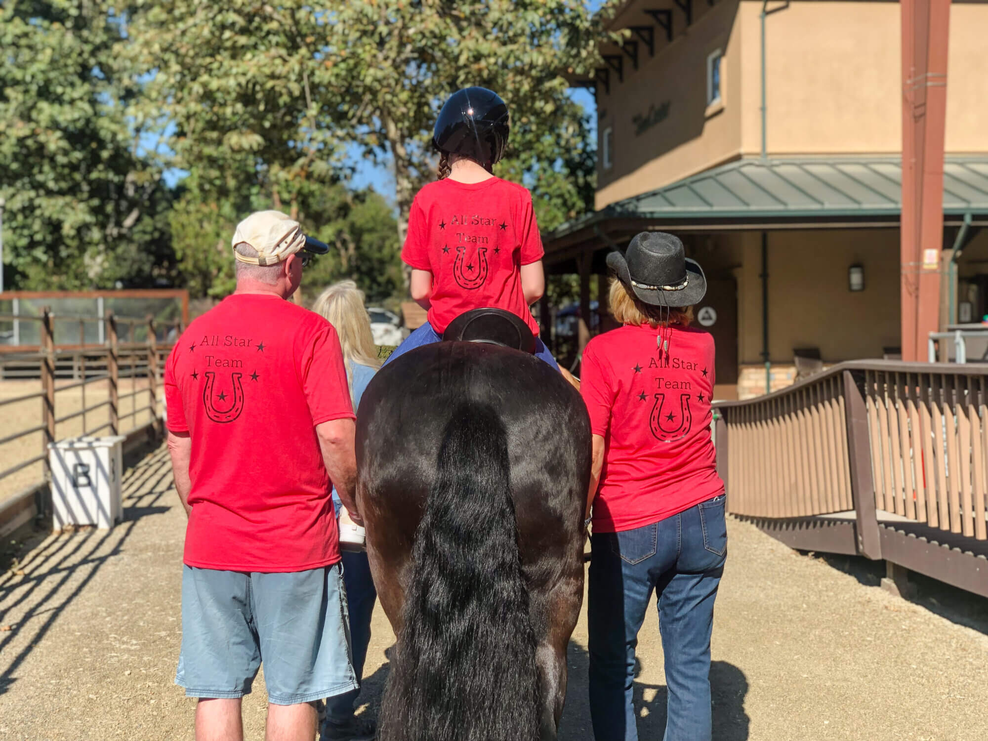 Allison says, “A favorite part of riding for Abigail, other than playing games, is steering her horse through obstacle courses, which engages her and helps with planning. She likes to bring apples and carrots to feed the horses and also enjoys trail rides, barn walks, and visiting the new horses.”