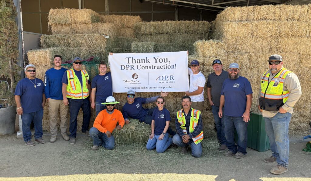 Most recently, DPR Construction partnered with Muhlhauser Steel and several generous companies to complete a special project for The Shea Center. Led by DPR executive Jason King, the team came together for a unique team-building exercise: building a hay soaking station for our herd. Muhlhauser Steel fabricated a custom rack for the hay to drain, while Sunbelt Rentals, Pan Pacific, and Holiday Rock donated equipment, plumbing, and concrete to bring the project to life.