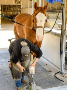 Approximately every 4-6 weeks, the farrier visits The Shea Center to trim and shoe some of our equine members. Horseshoes, typically made from aluminum or steel, protect the horse’s hooves and offer additional support during work.