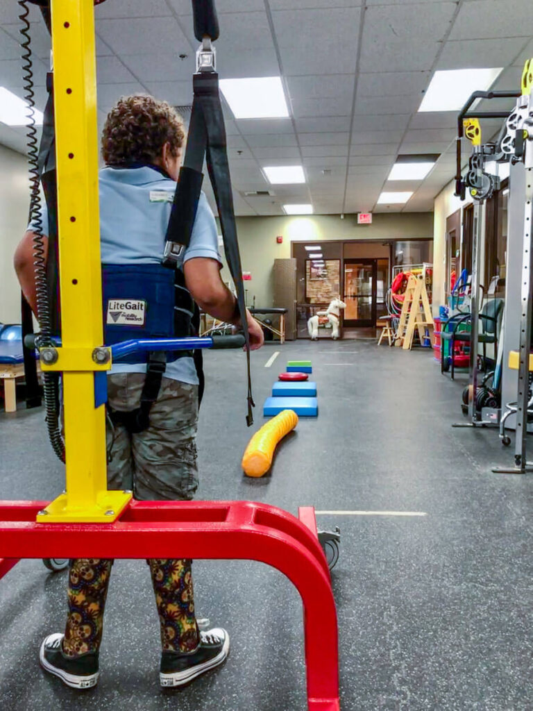 The Shea Center is proud to feature a LiteGait mobility device in our Inclusive Fitness Center (IFC).  The LiteGait provides supported weight-bearing gait training for both pediatric and adult clients.