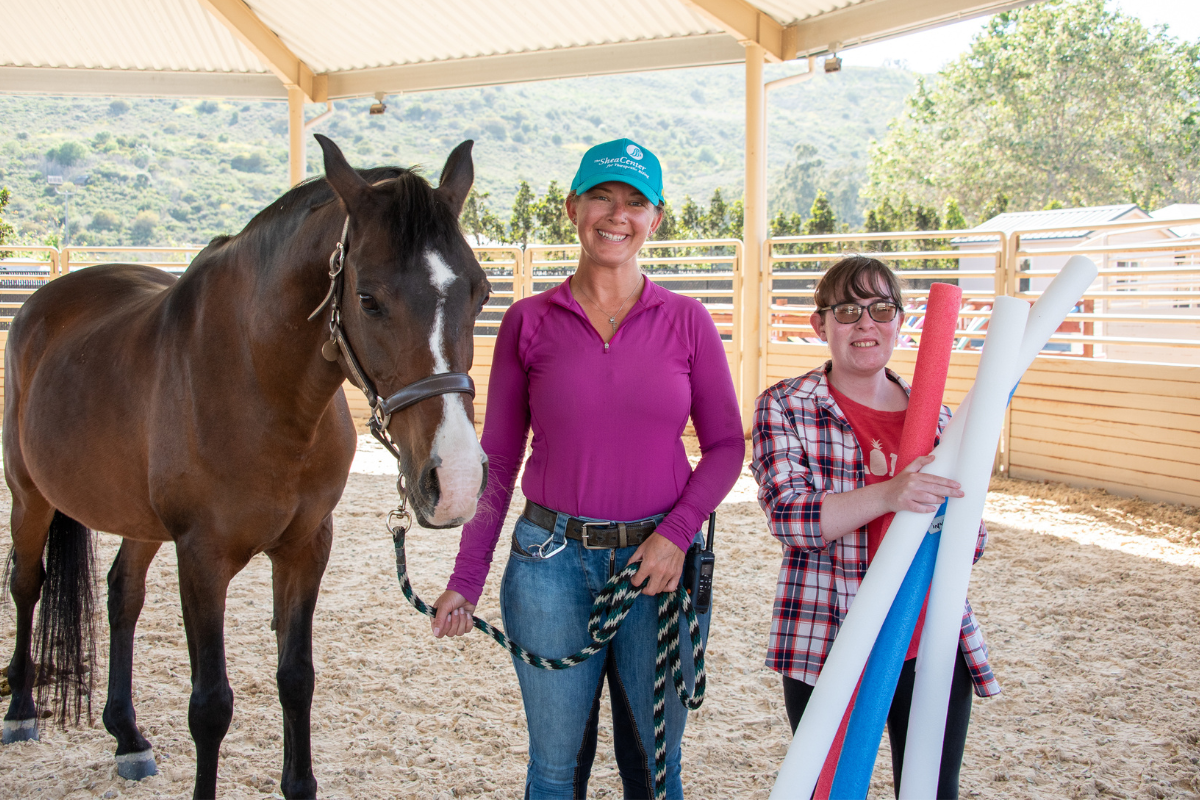 Twenty-year-old Megan Shook began riding at The Shea Center when she was five and continued intermittently until the age of 13. Born prematurely, Megan spent her first three months in the NICU, and even as an infant, she showed sensitivity to loud sounds. Diagnosed with autism at a young age, one of the ongoing challenges she faces is severe discomfort around loud and sudden noises—an aversion that contributes to heightened anxiety and impacts her overall quality of life. After taking a break from riding, Megan returned to The Shea Center to participate in the Equine Assisted Psychotherapy (EAP) program.