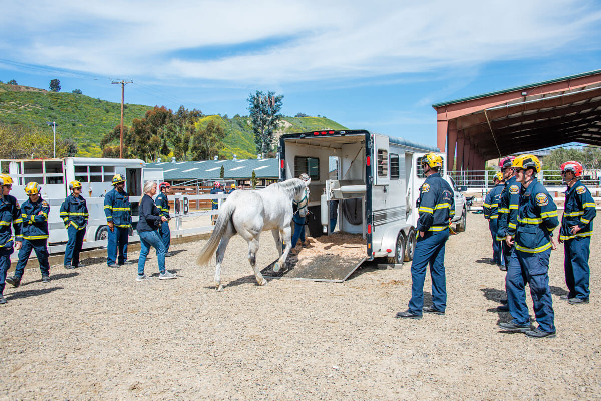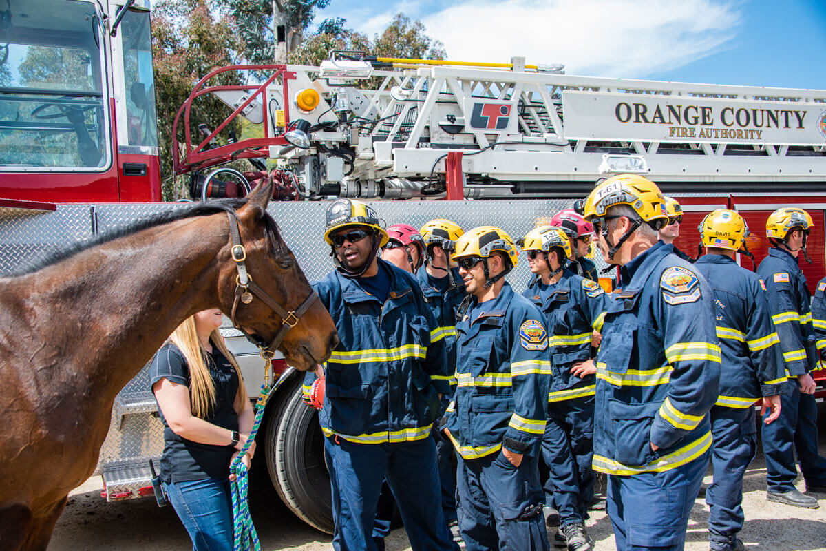 Local Orange County, CA fire departments were on-site at The Shea Center for the three-day training, which covered equine accident response and horse rescue harnessing techniques. While working with Shea therapy horses, these firefighters expanded their knowledge of horse rescue procedures, horse behavior,  loading and unloading horses out of a trailer, and other new skills with hands-on training.