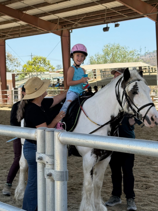 Finnley is a happy, smiley six-year-old who has been a client at The Shea Center for the past ten months. She especially loves riding Pixie—coincidentally sharing the same name as her kitty at home.