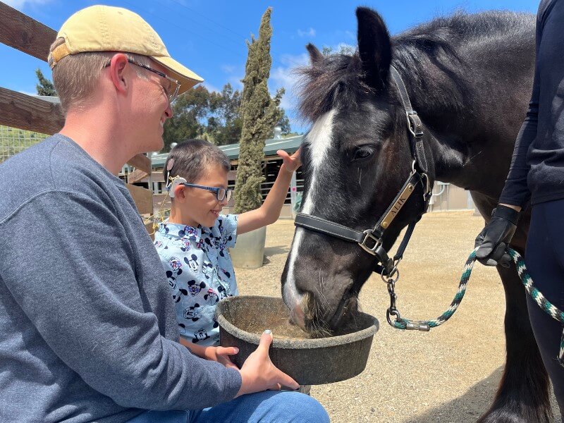 Riding at Shea is a highlight of Neil’s week. He gets on the horse, saying, “I am going to be brave,” and then reports to his mom when he trots, “I went really fast!”
