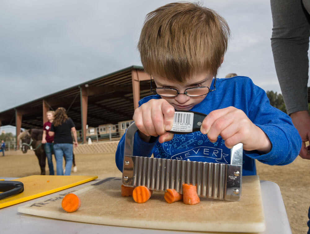 - Cutting carrots builds coordination while working on standing or sitting balance