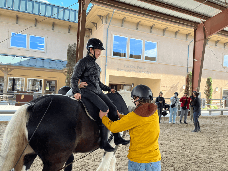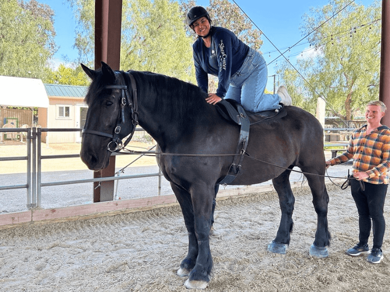 Our therapists developed what we call a “ride-along” as an experiential educational tool to showcase the effectiveness of equine movement in therapy to the healthcare community. Initially designed to demonstrate how the rhythmic motion of a horse can benefit patients, ride-alongs quickly evolved into something far more special! Today, they also serve as a training tool for students, adaptive riding instructors and new staff members. They are also used as an interactive tool for volunteers, donors, board members, and horse sponsors to strengthen their understanding and connection to The Shea Center.