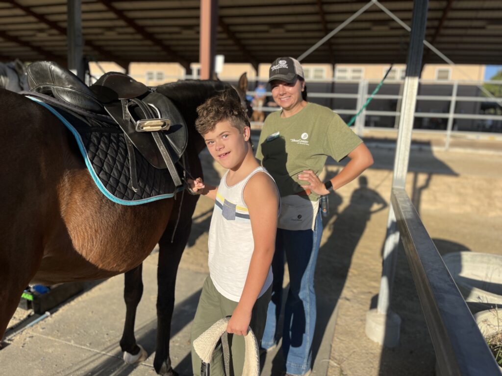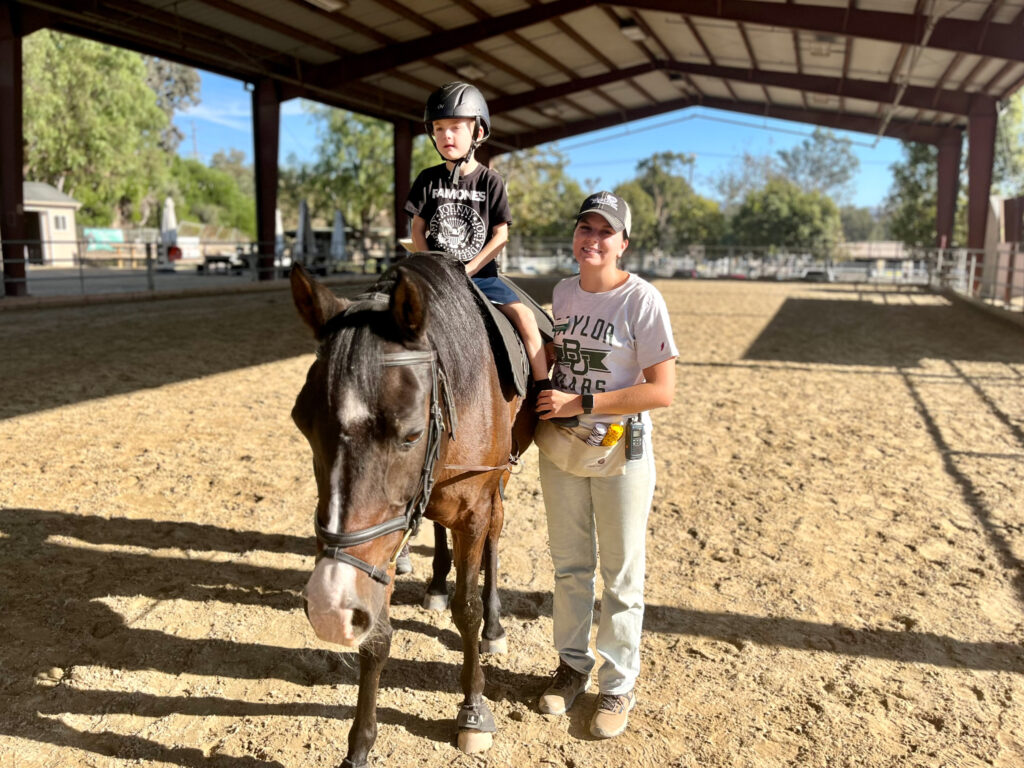 Growing up in Corona, CA, I rode horses and taught horseback riding lessons. I have always loved working with kids and horses, which led me to volunteer at a hippotherapy facility while in high school and college. During that experience, I found my love for occupational therapy, specifically hippotherapy.”