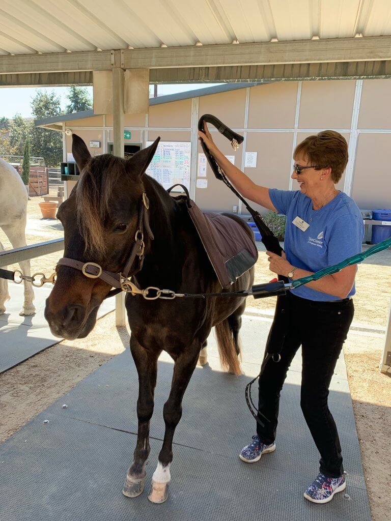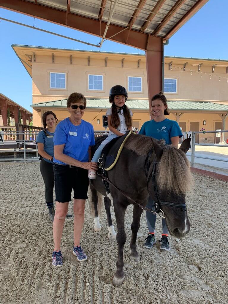 For 18 years, Julie drove past The Shea Center on her way to announce at hunter/jumper horse shows at Sycamore Trails Stables. When she retired from announcing, she needed to get her “horse fix” elsewhere. Her retirement was The Shea Center’s gain, and since 2014, she has been a fabulous lesson volunteer!