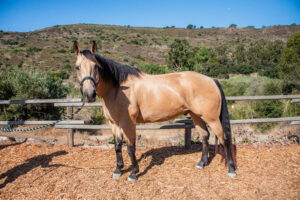 Romeo needs a half or partial sponsorship. He is a buckskin Quarter Horse gelding who has been a ranch and rodeo horse and loves to have his back scratched.