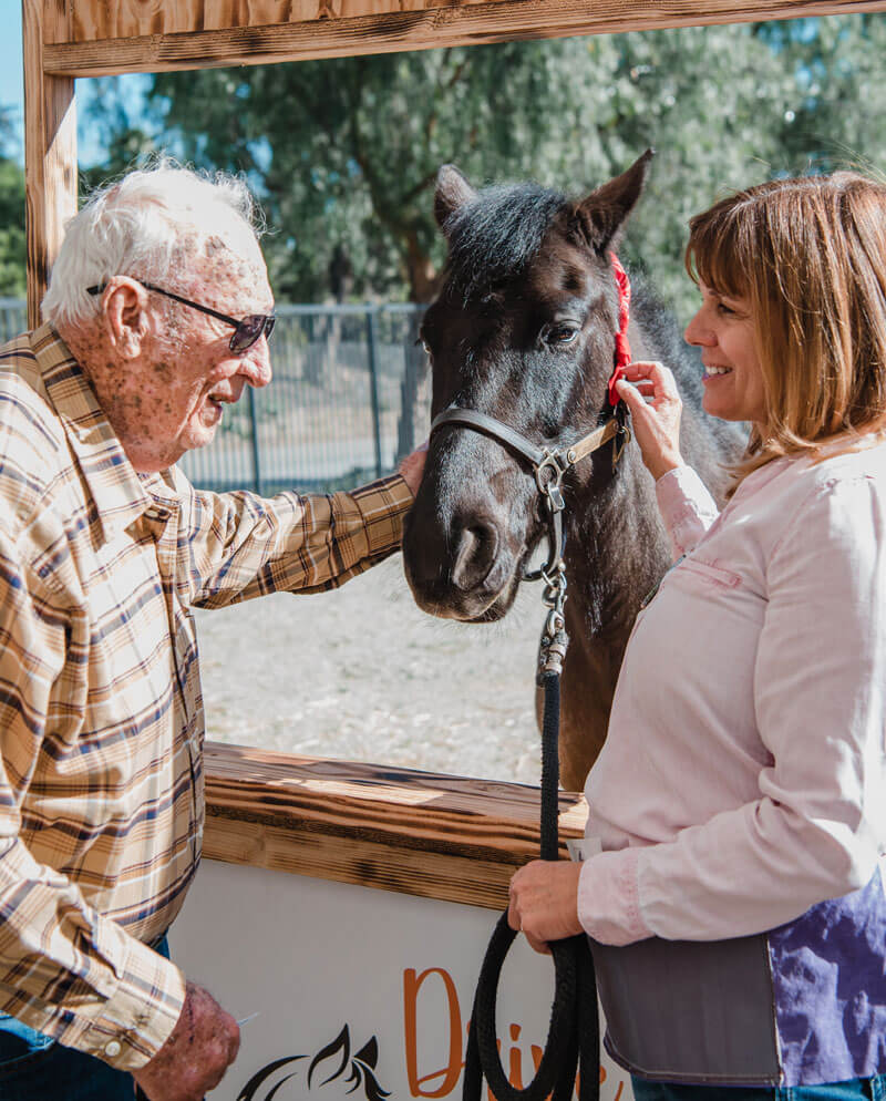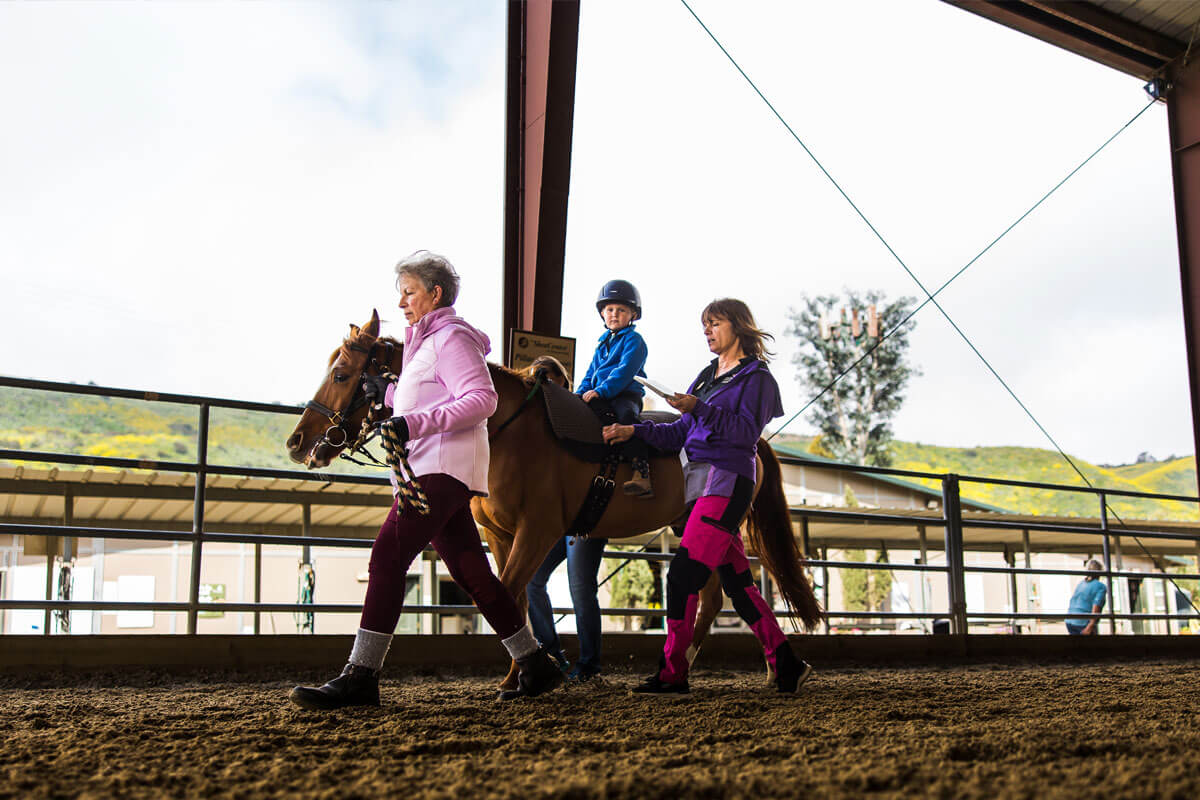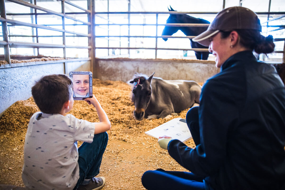 Terri’s work involves a lot of play and unmounted activities like chopping carrots and walking around the barn to feed the horses. She says, “With non-verbal communicators, they often love the horse’s movement and want more!”