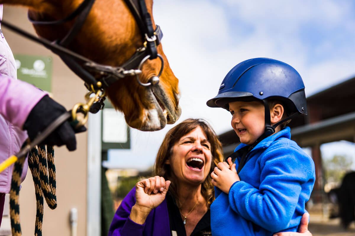 Terri finds hippotherapy to be an effective tool for her clients as the movement of the horse can help to set their attention on speech targets. Children who can have difficulty focusing are often captivated by the horses, and Terri is able to use this to her advantage by providing rich language opportunities that are not always possible in a traditional clinical setting.