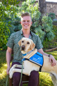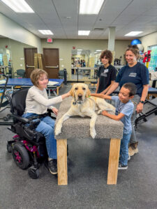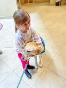 After puppy raising, Tex underwent 6 months of professional training with Canine Companions. Matt then completed a 2-week “team training” to learn how to care for and work alongside Tex. On day three, Tex and Matt were paired, and it was clear from their first meeting that Tex was the perfect fit for Shea! Today, Tex completes yearly recertifications to maintain his status as a facility dog.