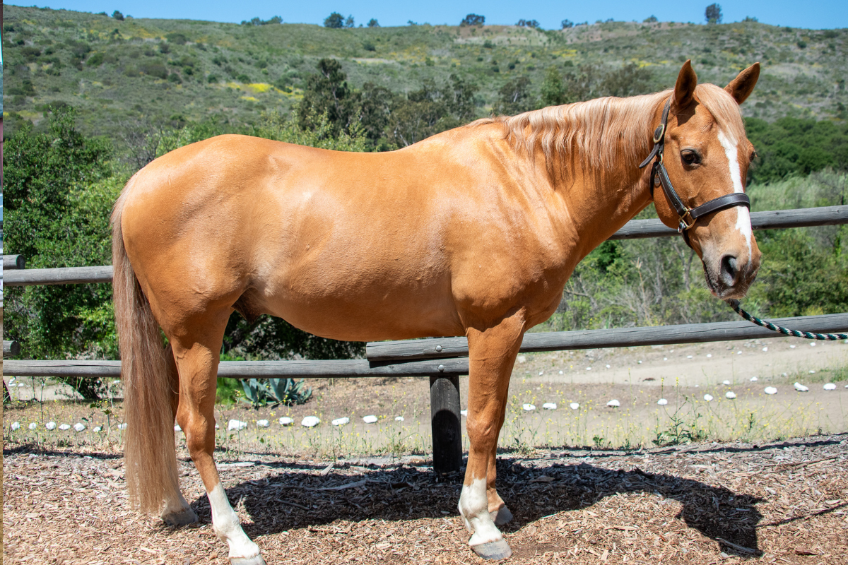 Color/Markings: Palomino with blaze and snip; socks on both hind legs and front right.