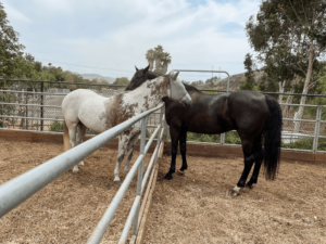 Some horses are independent and enjoy time away from the herd and busy barn to relax. It is always fun to see which horses match well and make new friends, often grooming each other on the withers.