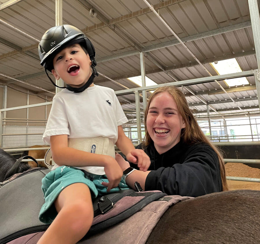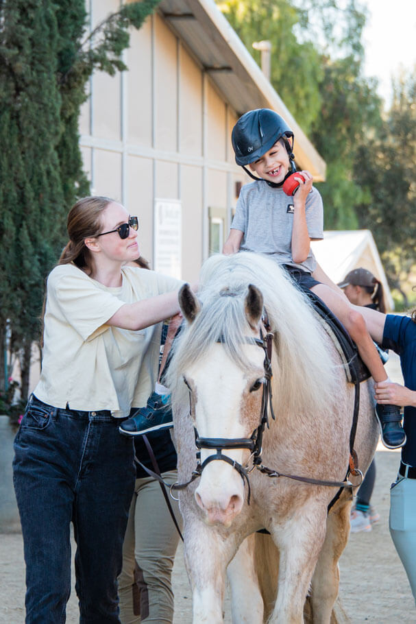 Why we love her: Grace is a sidewalker for client Hudson D. on Thursday afternoons and Saturday mornings during his physical therapy hippotherapy treatments. In addition to supporting him on his horse Auggie, Grace keeps him smiling by singing his favorite songs, while helping him build strength and independence.