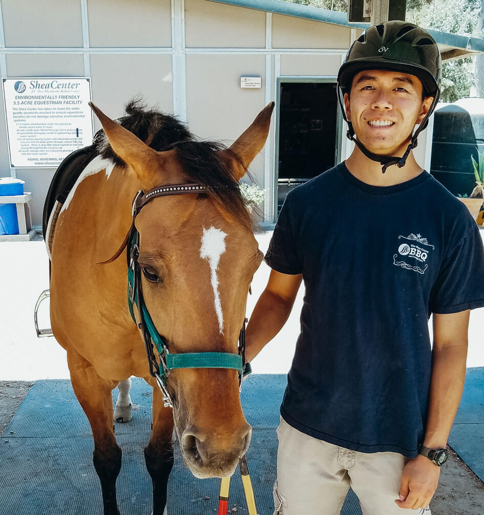 Path to the Shea Center: Preston was introduced to The Shea Center by his mom, Occupational Therapist Karen Yamasaki – a member of our therapy team. “I started coming in once in a while, to help her and fill in as a sidewalker. I had such a great time working with the kids, seeing the impact that horse movement had on their physiology, coordination, balance and strength. I wanted to do more, so I decided to officially join the volunteer program.”