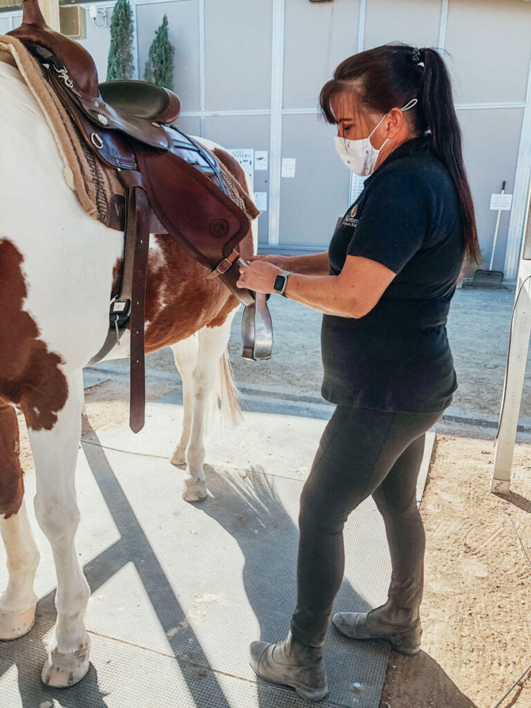 Lessons learned: “I have learned so much about horse behavior and movement. How the horse’s movement combined with client tasks generate muscle strength and improves posture. A client would have a more difficult time achieving the same result in a different activity”. And, she adds, our clients have fun riding their horse in our equine environment.
